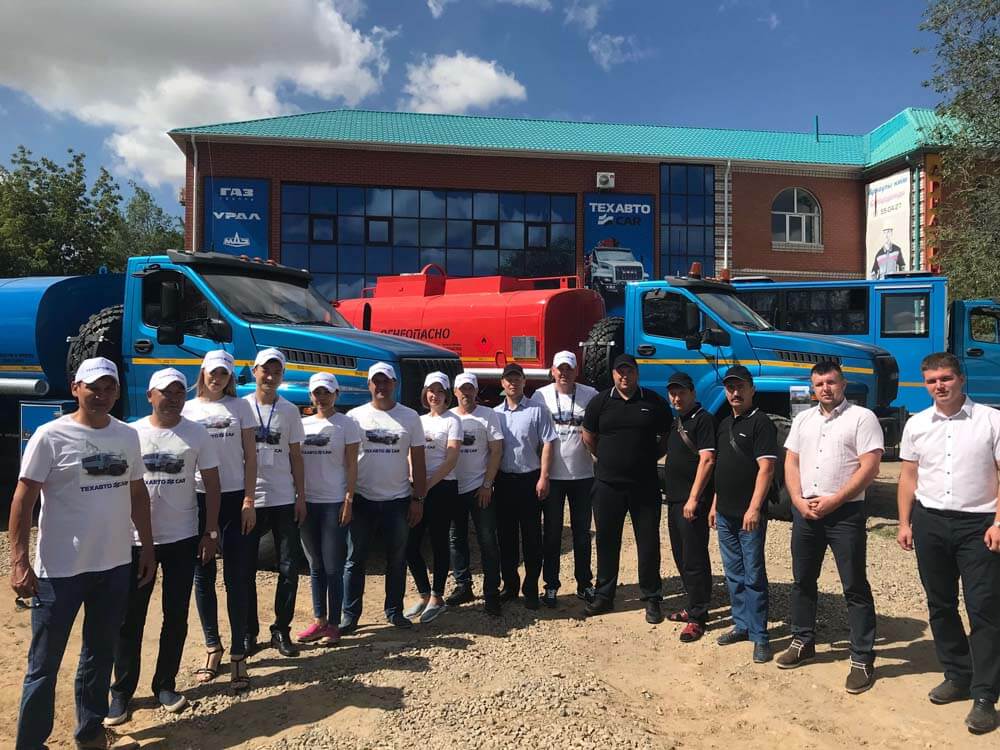 18-19 июня наша компания совместно с ОАО "АЗ "Урал" в рамках автопробега презентовала в г.Актобе новейшие автомобили Урал NEXT экологического класса Евро 5. Покупателю были представлены - автотопливозаправщик АТЗ-12, автоцистерна для питьевой воды АЦПТ-10, вахтовый автобус Урал 32551 и седельный тягач Урал 44202-74.