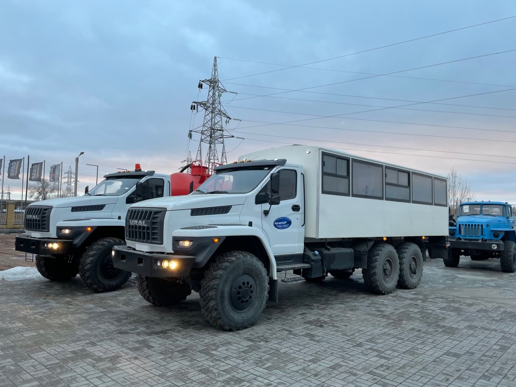 Вакуумные машины МВ-10 на шасси Урал "NEXT" с двигателями ЯМЗ-536 - 275 и 312 л.с., вахтовые автобусы Урал на 28 посадочных мест с системами кондиционирования салона и автокран КС-55732 "Челябинец" так же с кондиционером кабины водителя уже успешно работают в уранодобывающей отрасли нашей страны