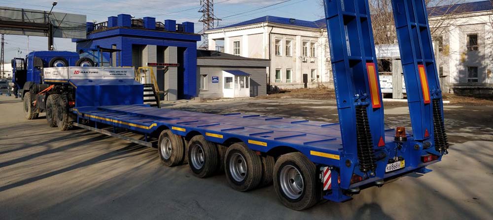 Поставка полуприцепа HARTUNG 94337-0000010 в г.Петропавловск. Тяжеловоз будет перевозить бурильную установку направленного горизонтального бурения(ГНБ). Платформа сделана по специальному заказу заказчика.