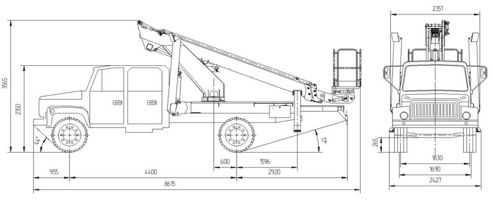 | Габаритные размеры подъемника в транспортном положении, не более, мм: | 7809х2500х3665 | 8615х2500х3665 |